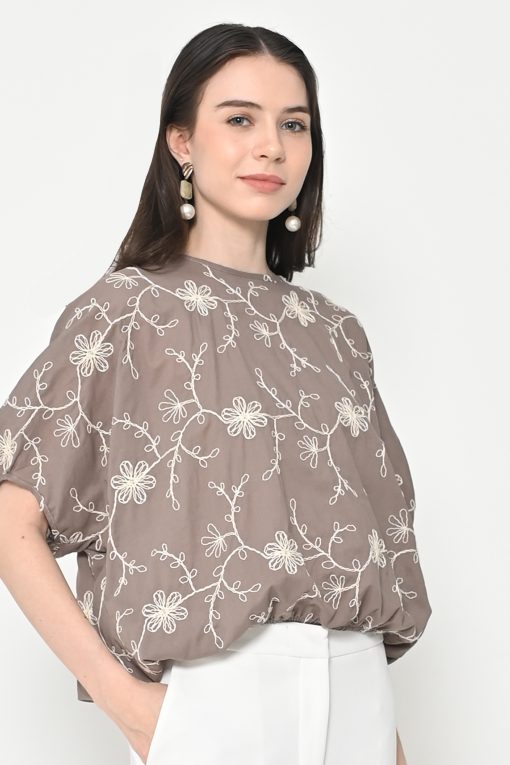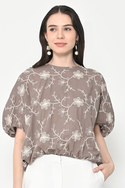 Neu’Mor Floral Embroidery Top – A834 Light Brown