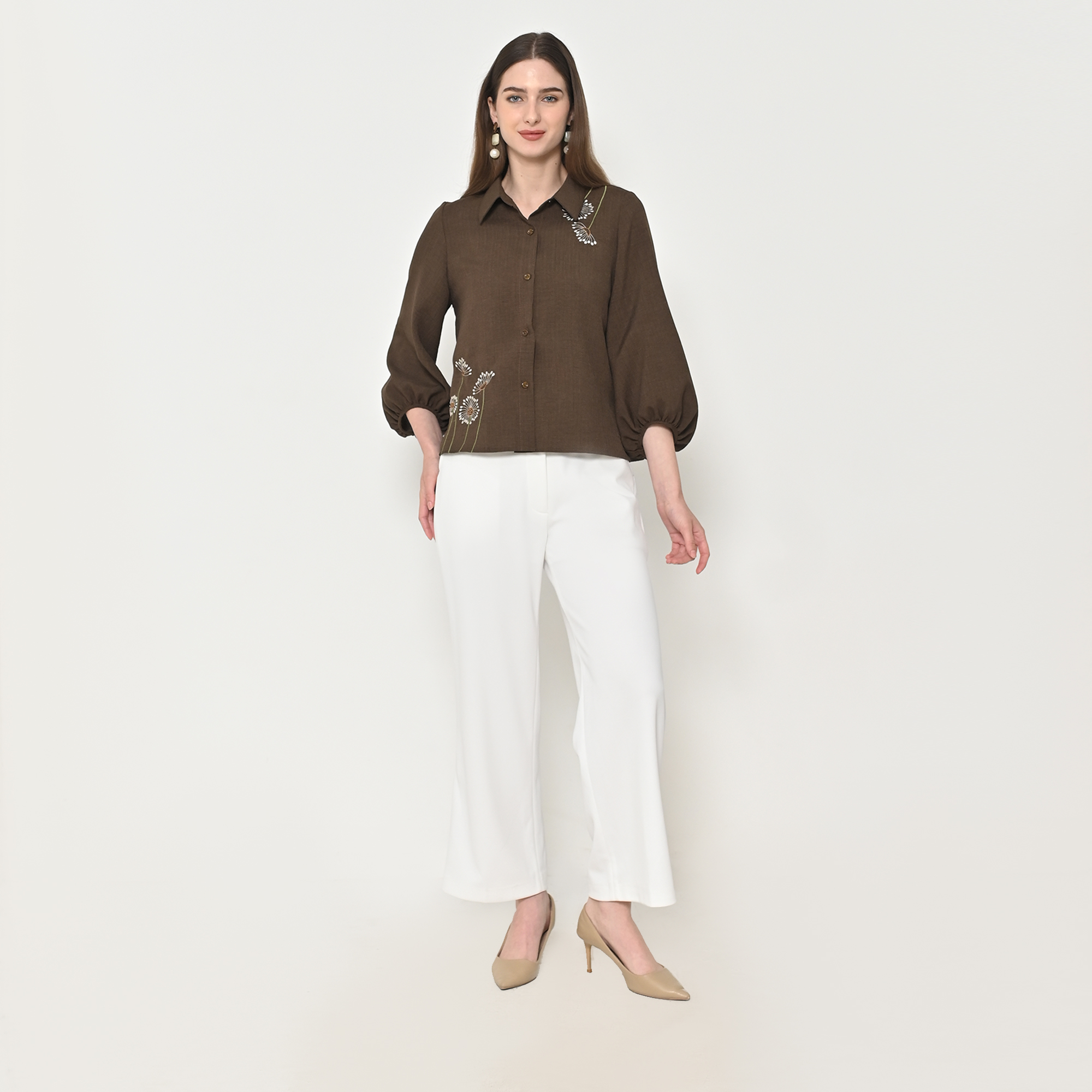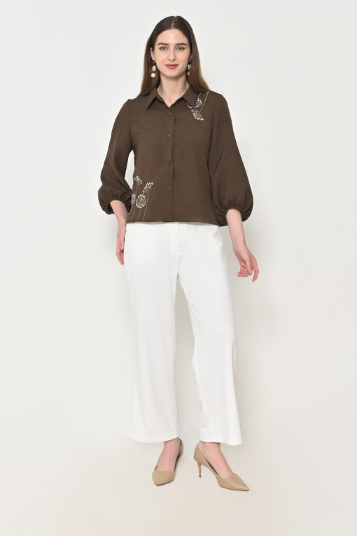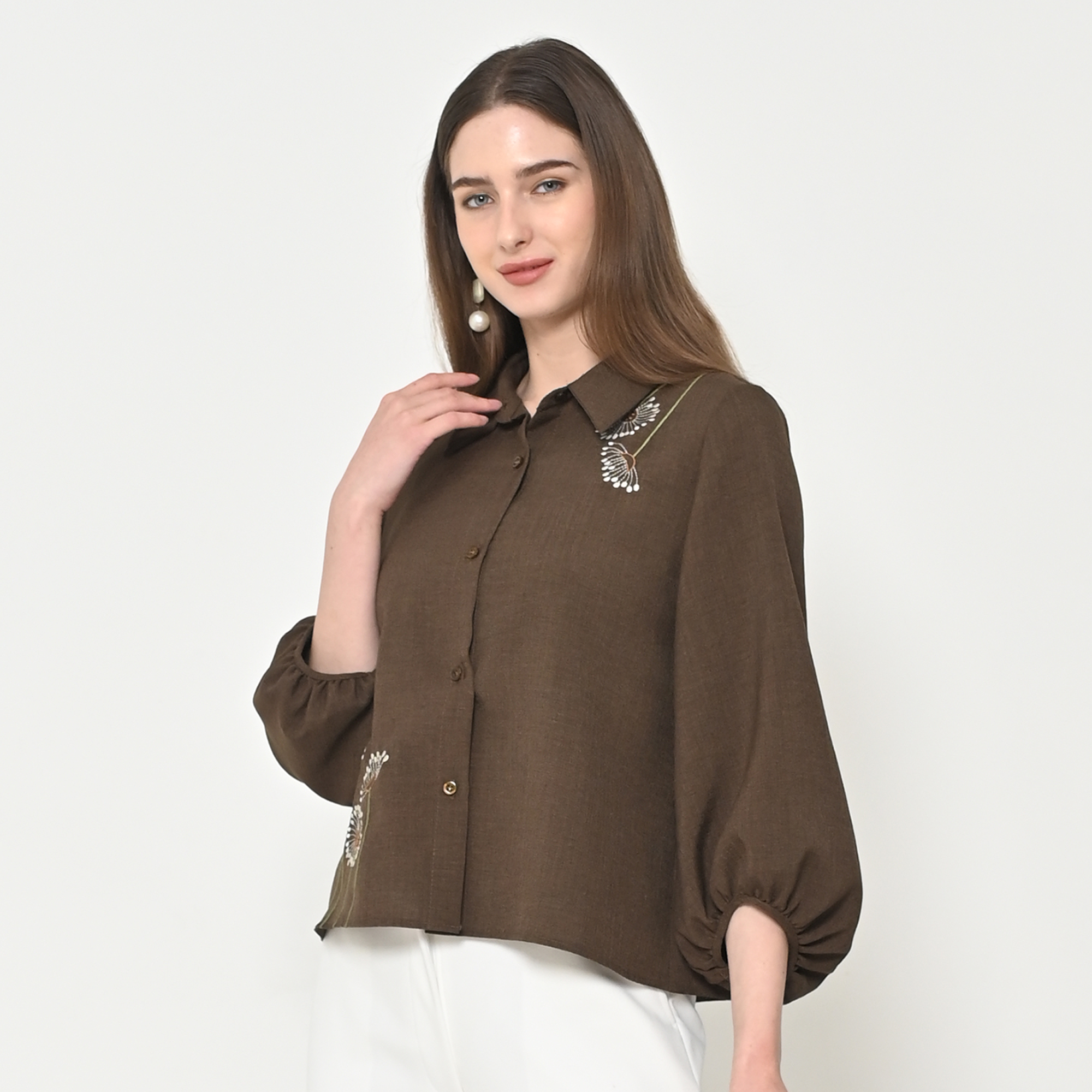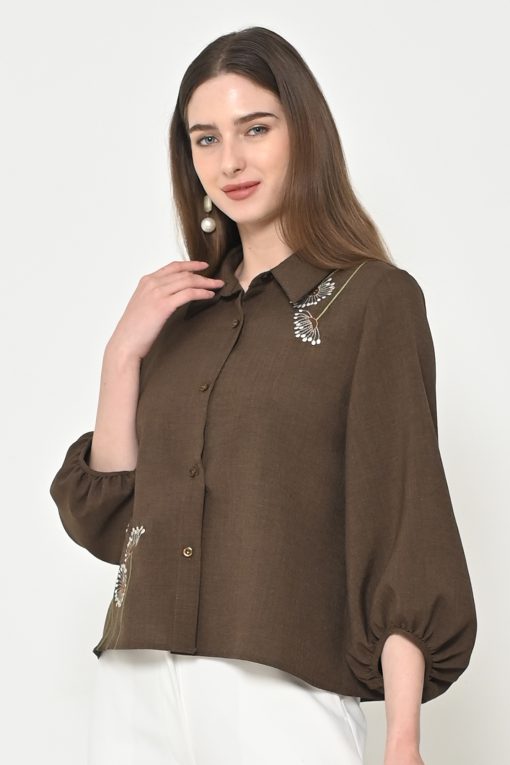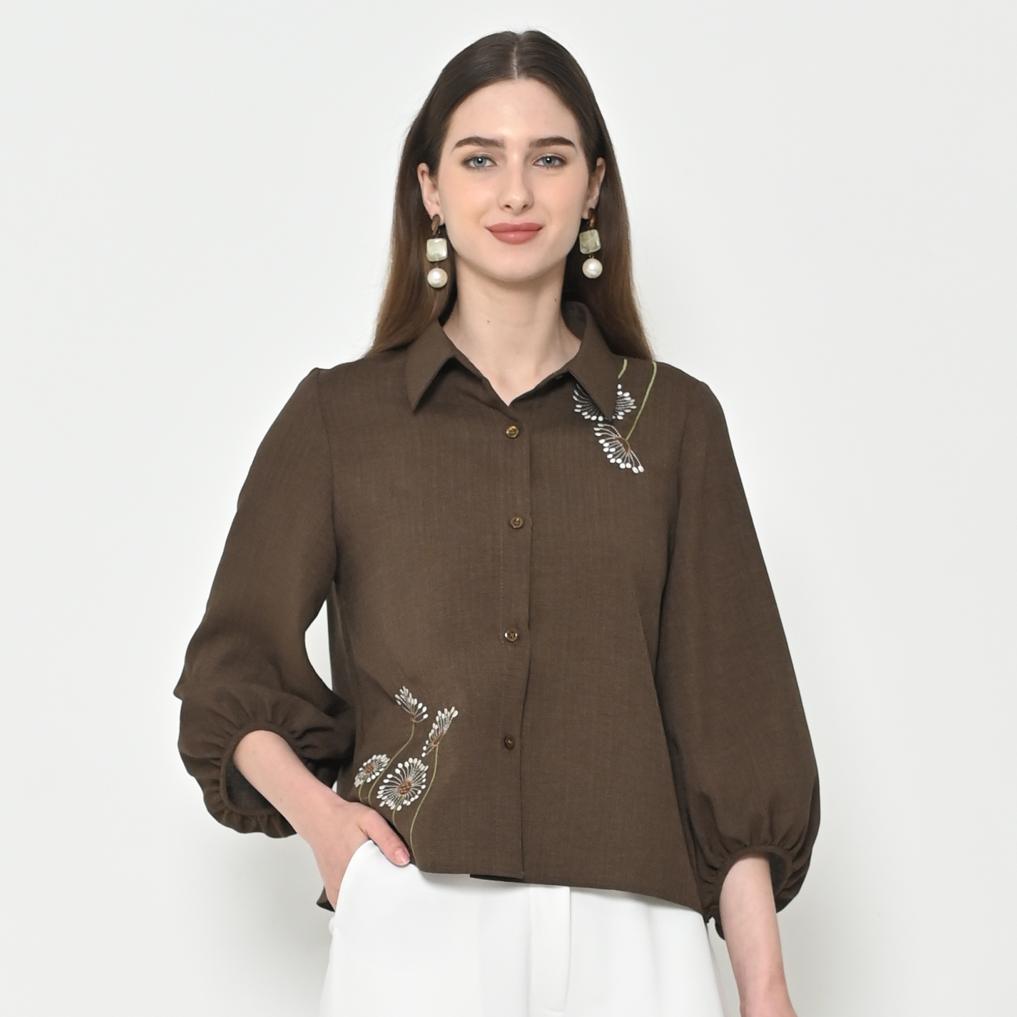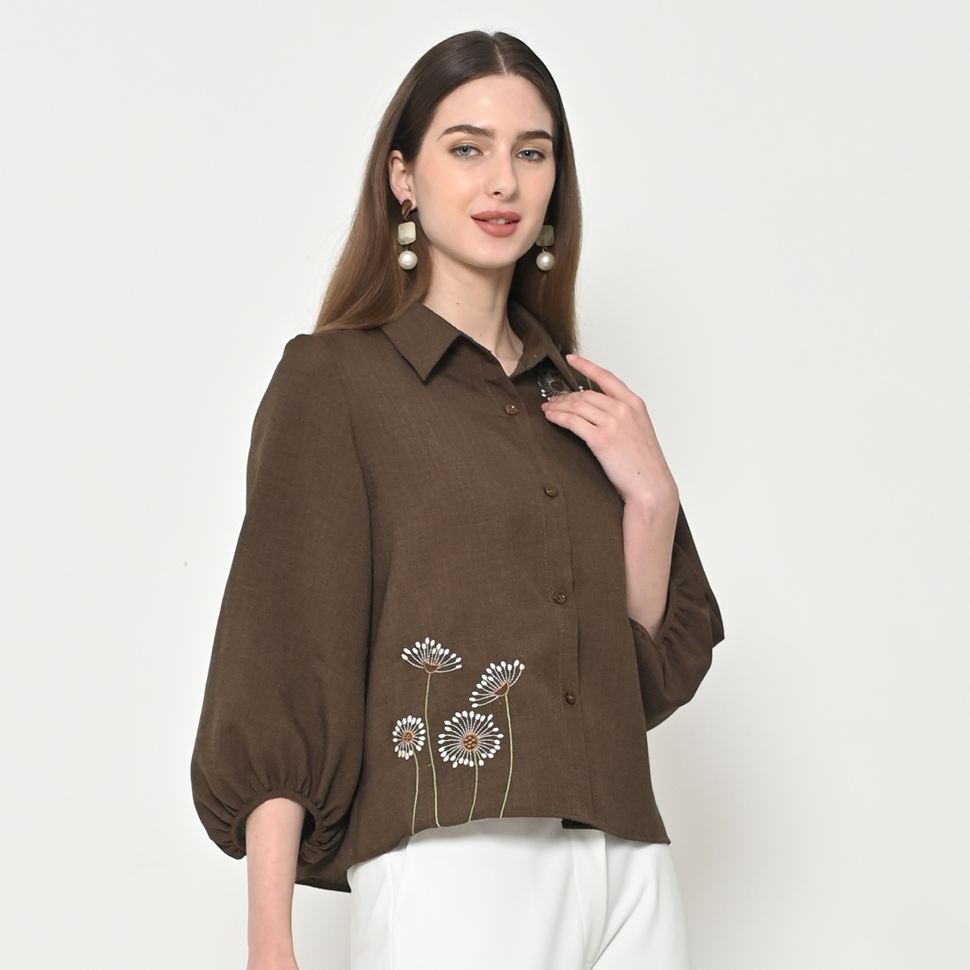 Neu’Mor Floral Whisper Button-Up Top – A820 Dark Brown