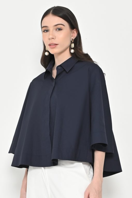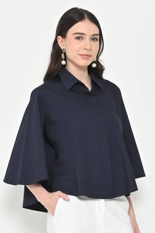 Neu’Mor Plain Collared Shirt with Wide Sleeves – 115G Dark Blue