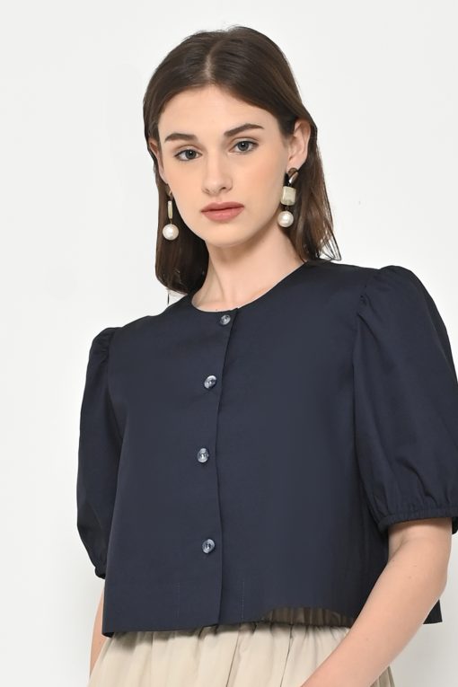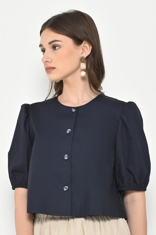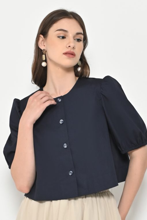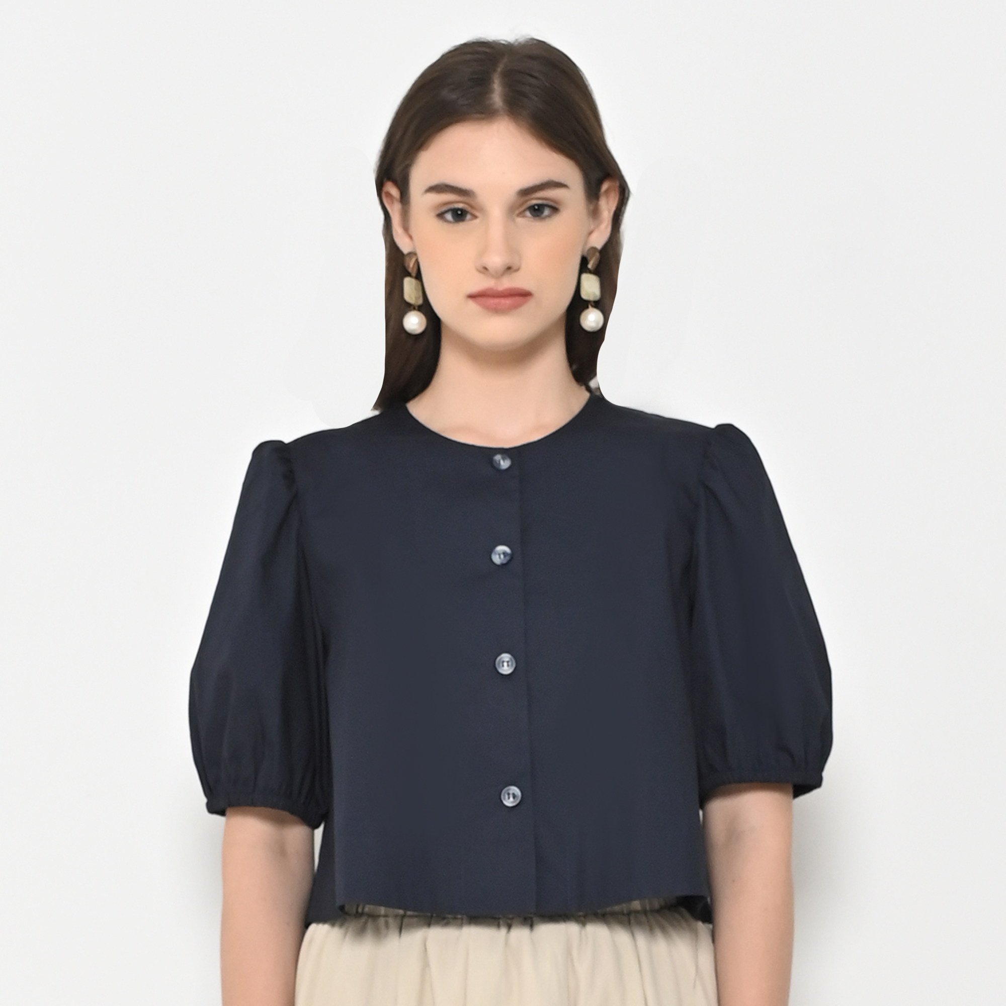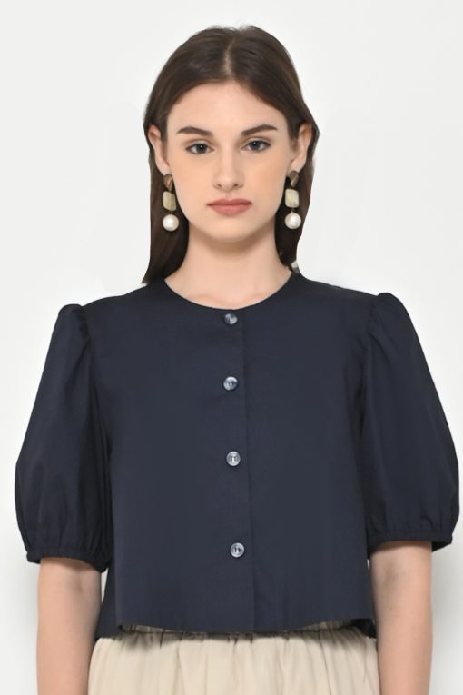Neu’Mor Puff Sleeve Button Up Blouse – A825 Dark Blue
