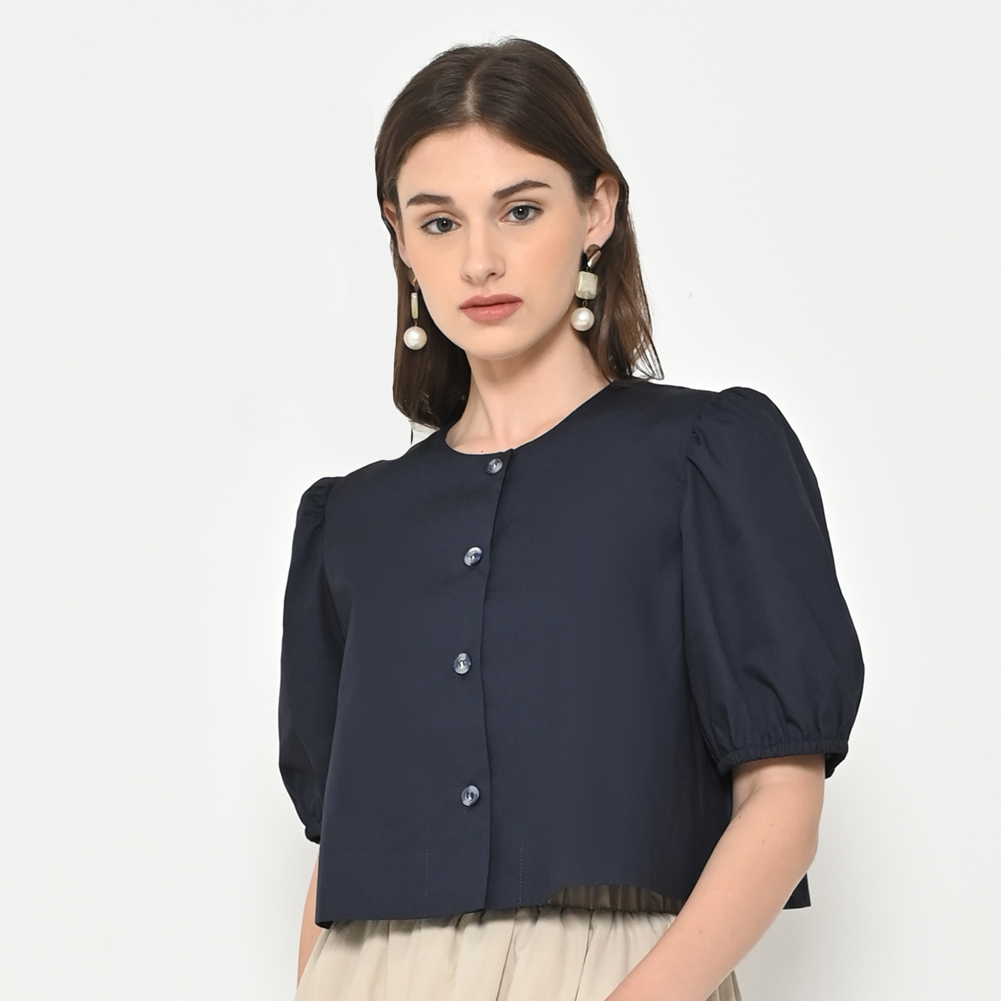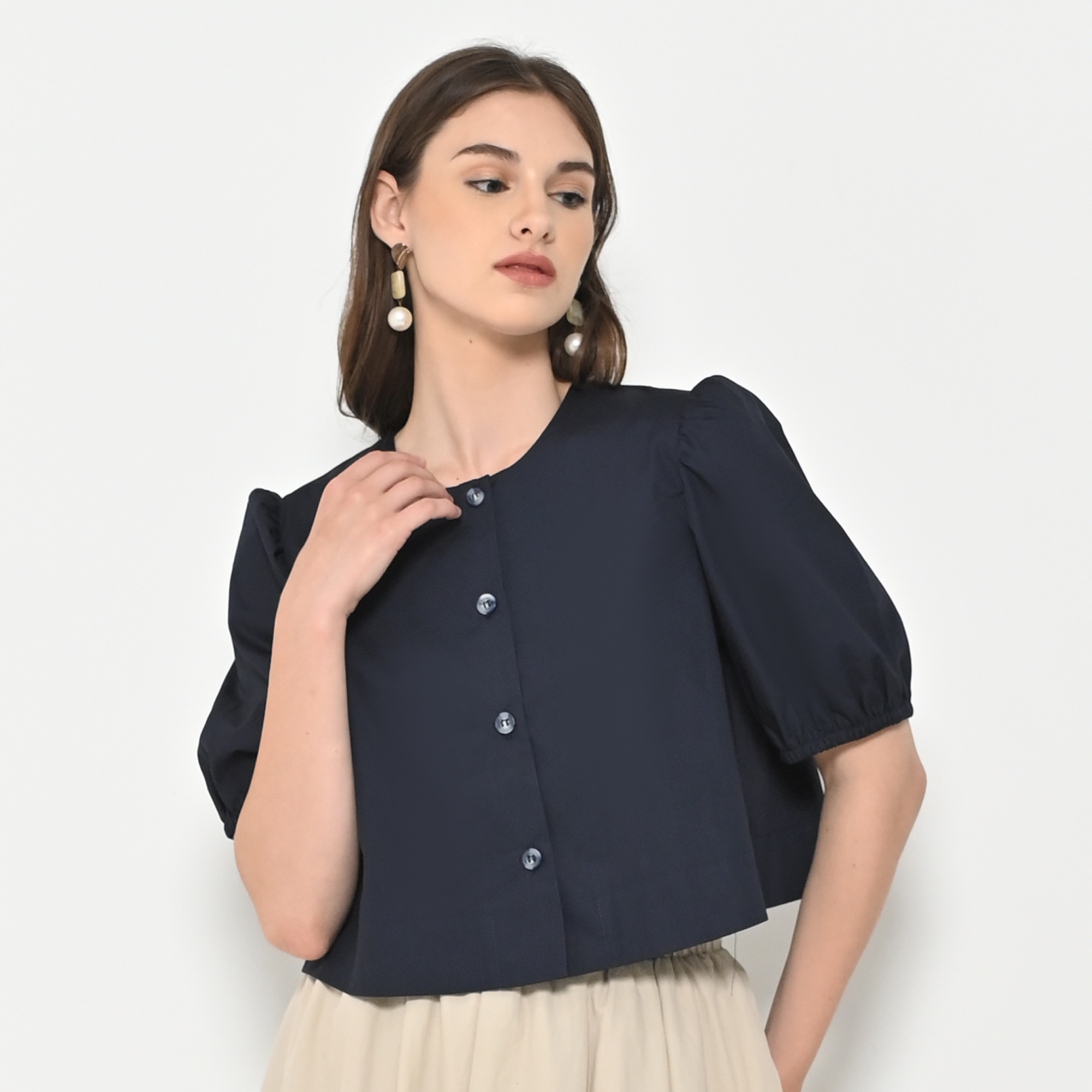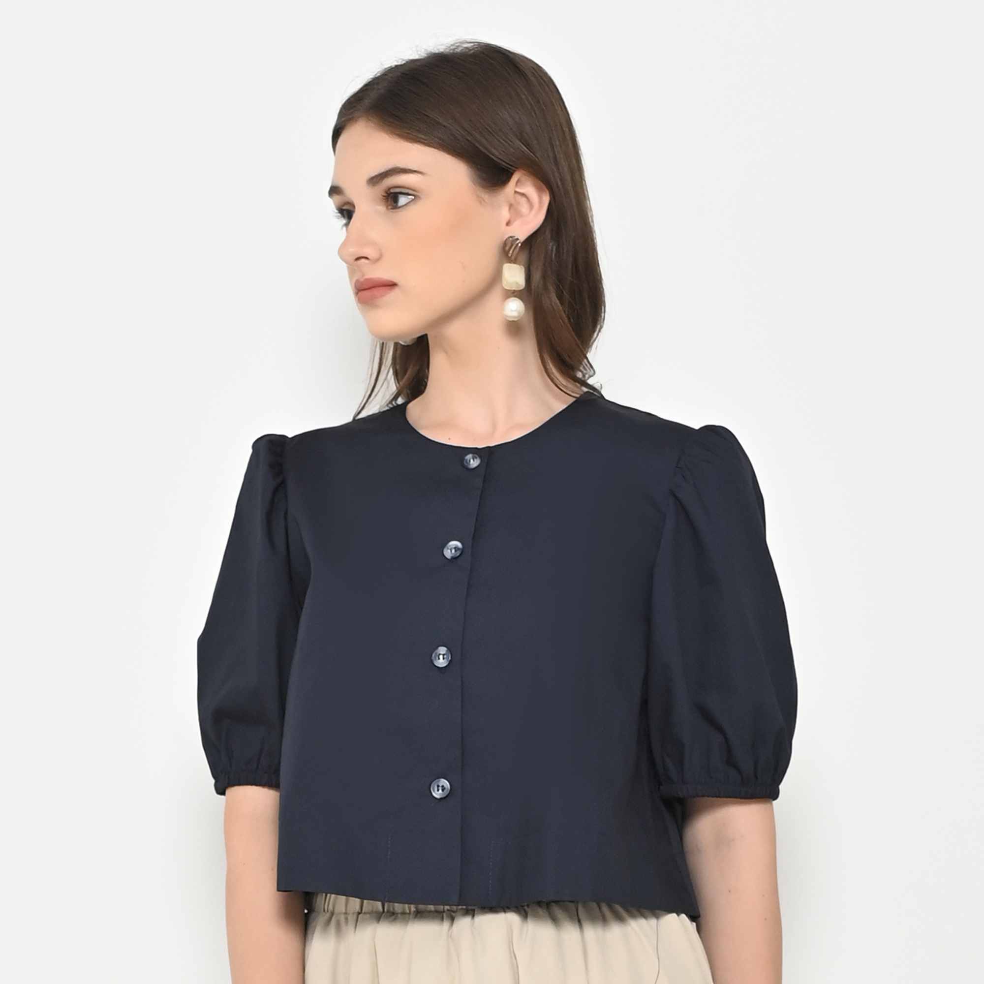 Neu’Mor Puff Sleeve Button Up Blouse – A825 Dark Blue