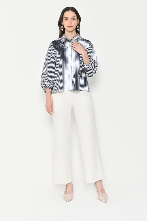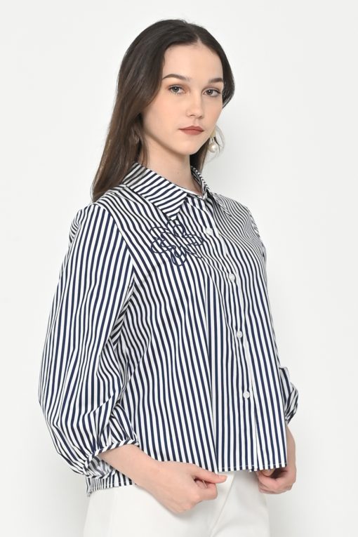 Neu’Mor Striped Floral Embroidered Shirt – A819 Dark Blue
