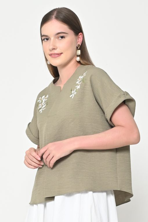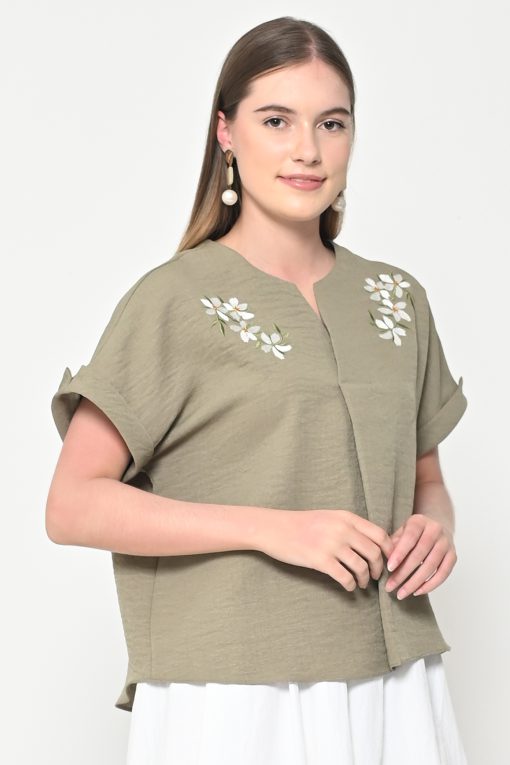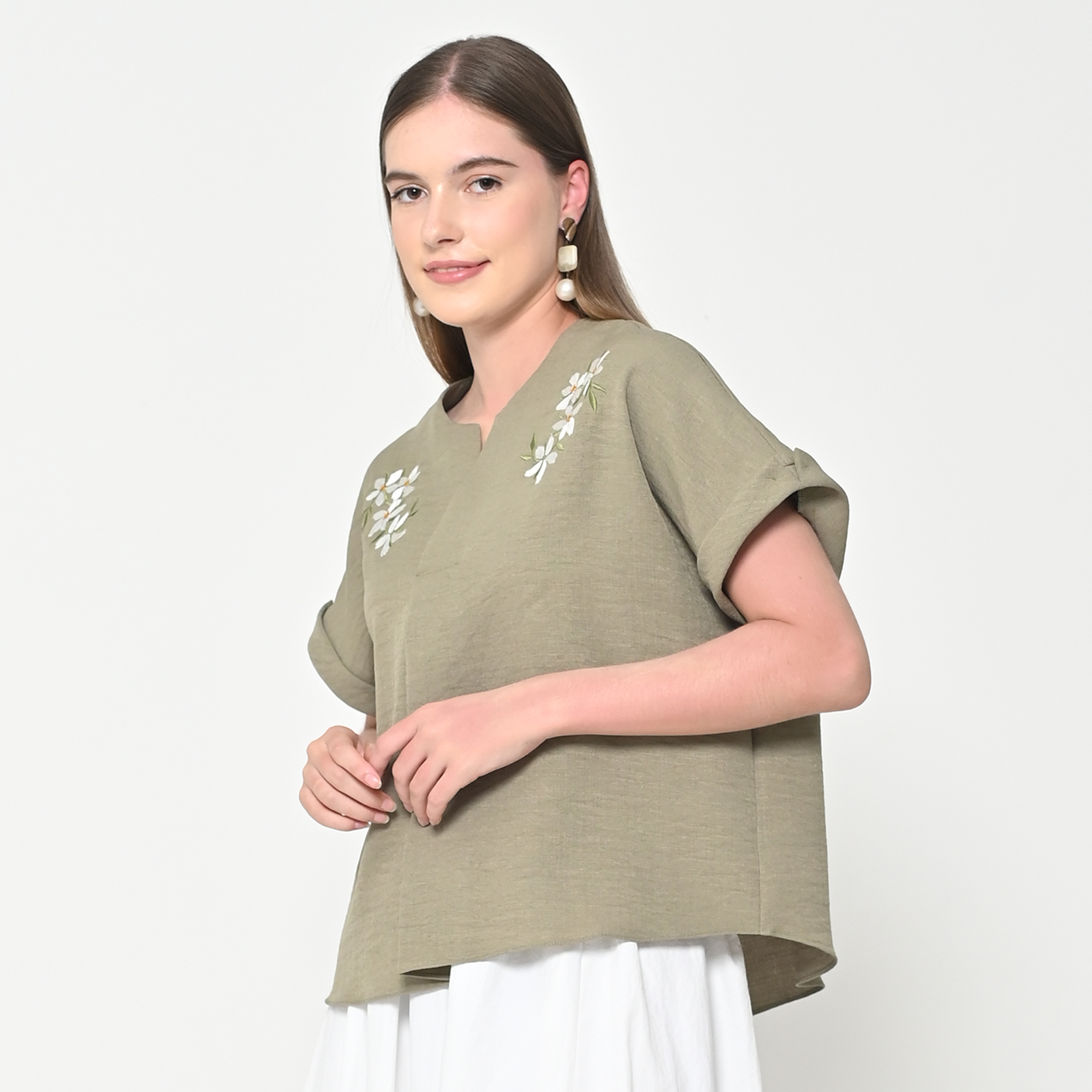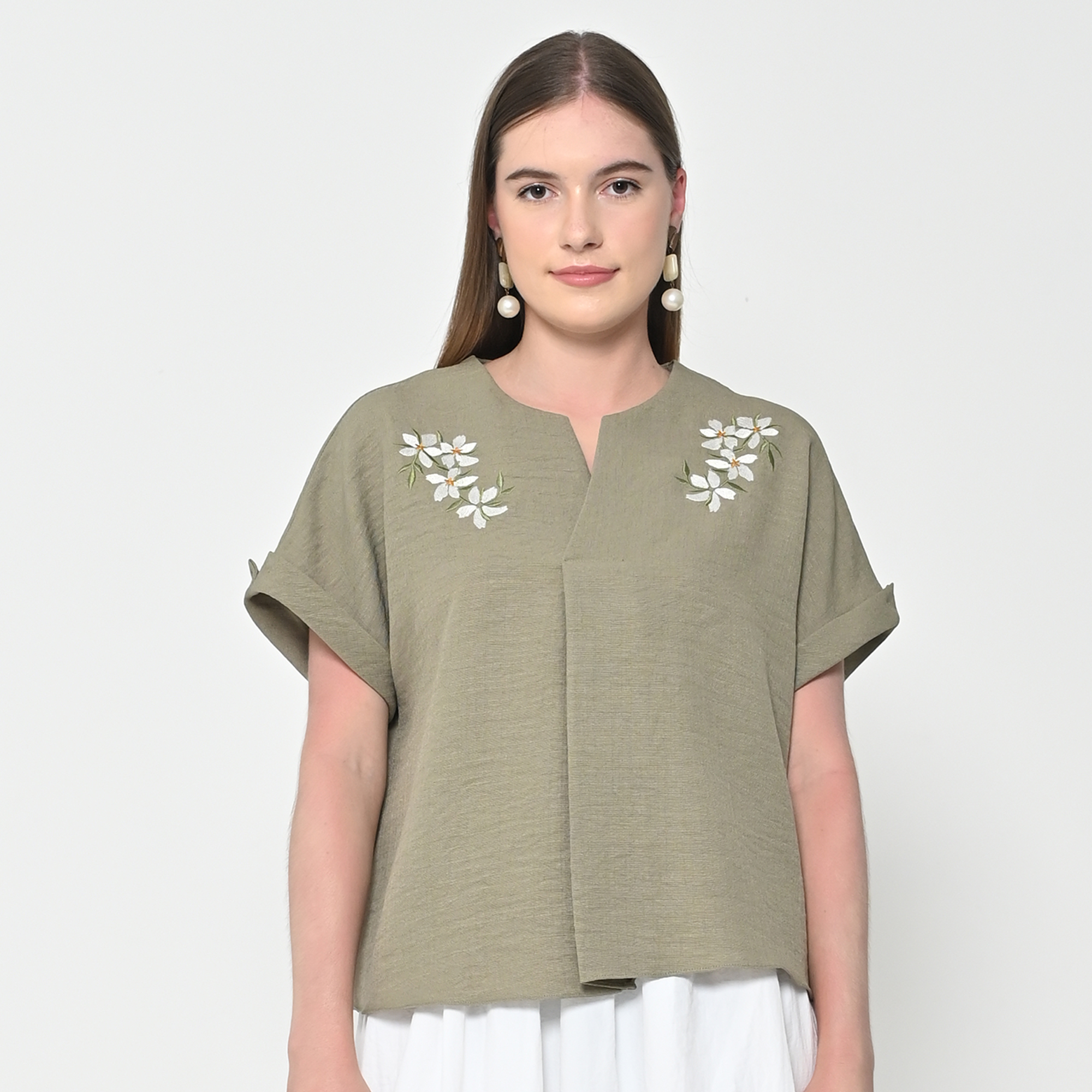 Neu’Mor V-Slit Neck Embroidered Top – A814 Greentea