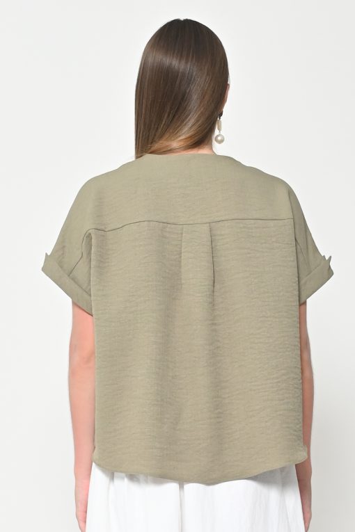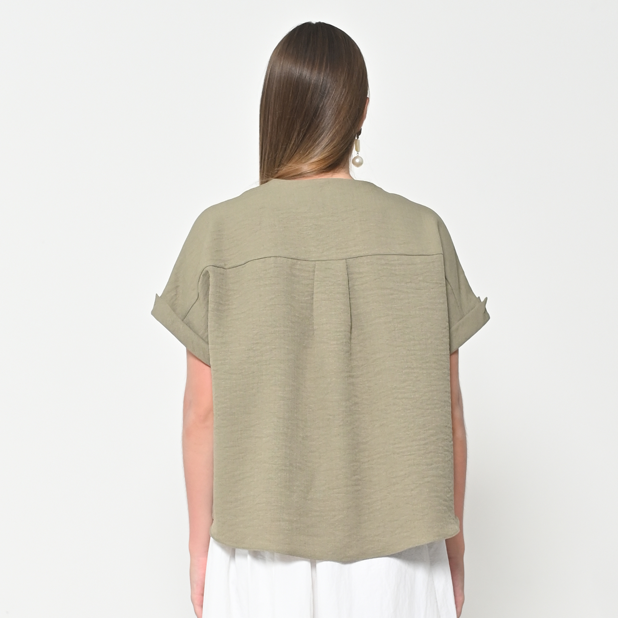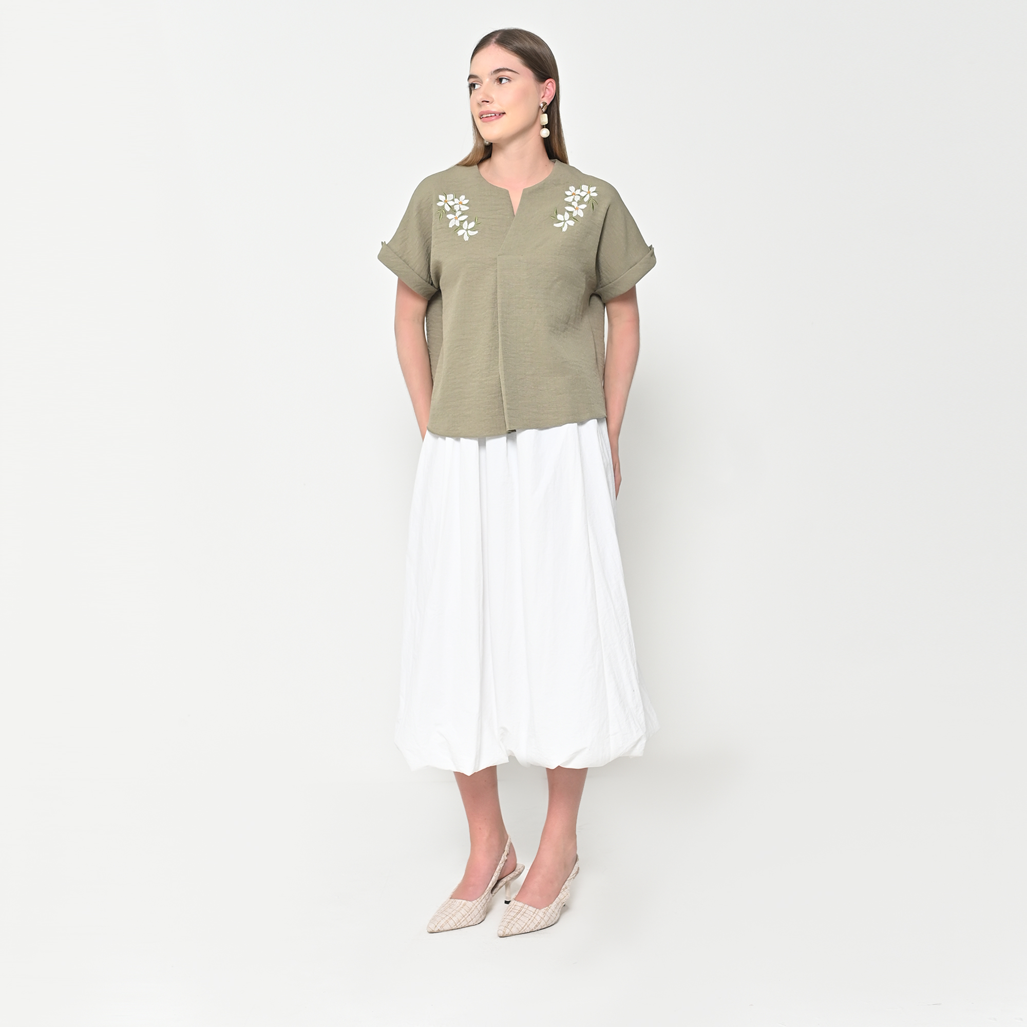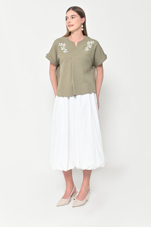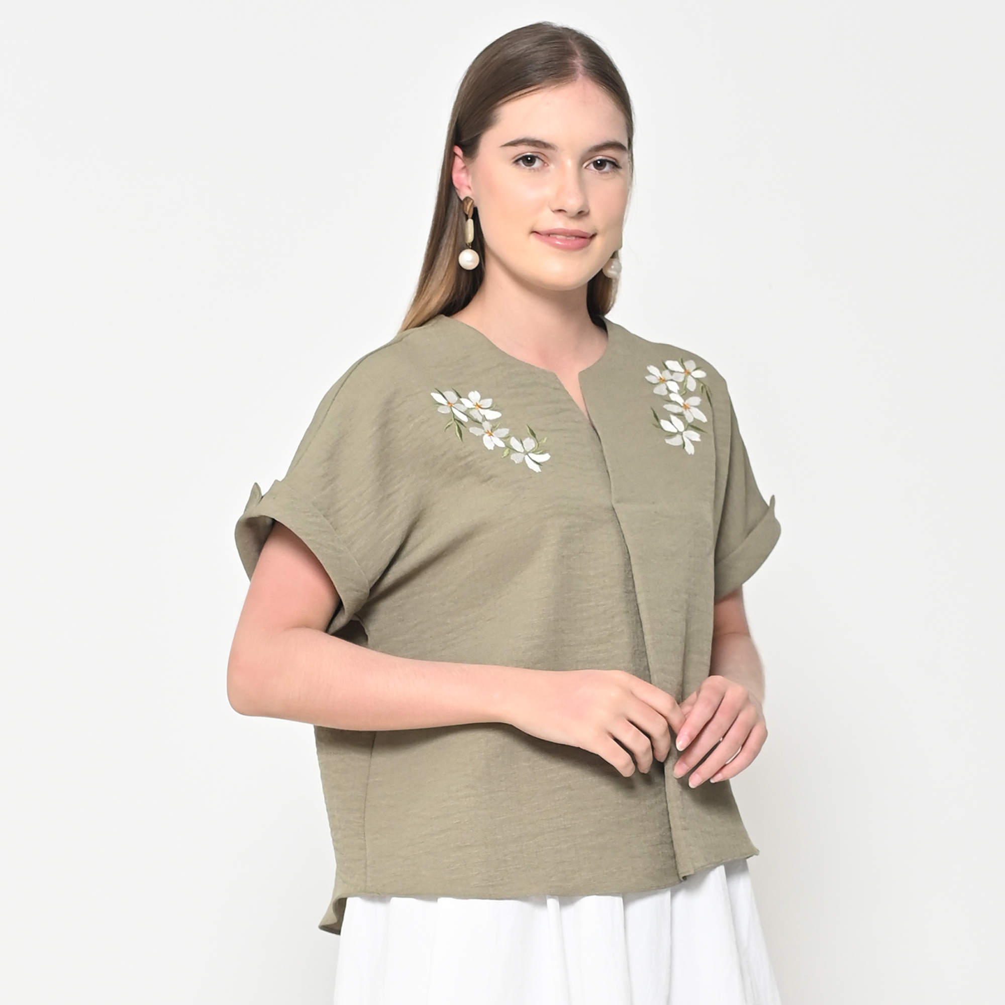Neu’Mor V-Slit Neck Embroidered Top – A814 Greentea