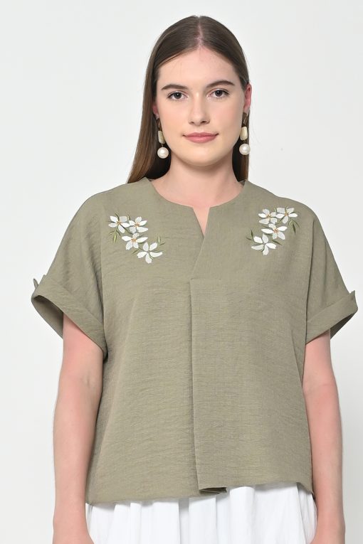 Neu’Mor V-Slit Neck Embroidered Top – A814 Greentea
